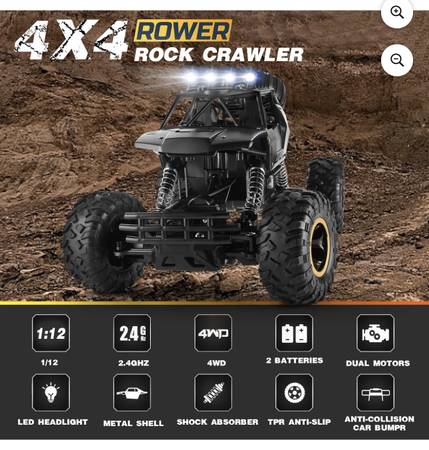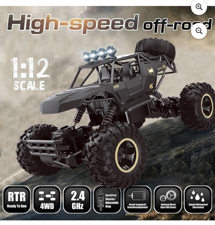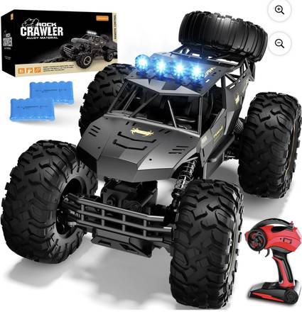 4DRC 1:12 Rc Car,off Road Truck Remote Control Car Metal Shell 2.4G 4WD Dual Motors, with 2 Batteries Black New in box
