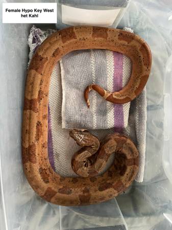 I have three Colombian boas for sale. Two females and one male. 1 female Hypo Key West het Kahl Albino. 4+ feet, 3 years 9 months old. Eating live medium rats 1x week. $500 1 female Super Hypo...
