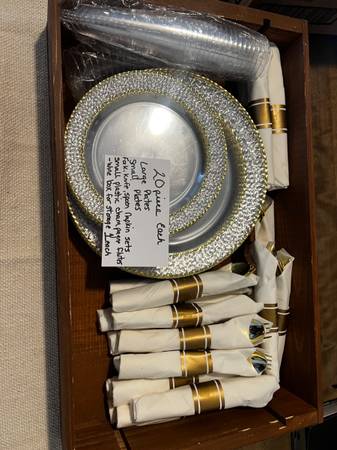22- small salad plates (if you want more dishes or silverware- I can send Amazon link to store I purchased them from, all gold plastic)
