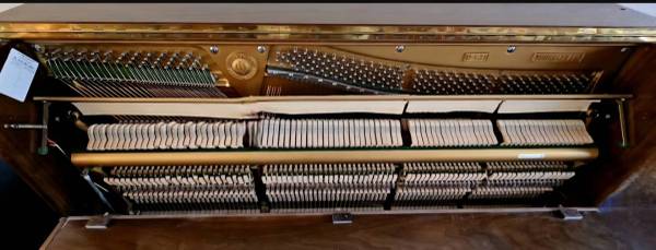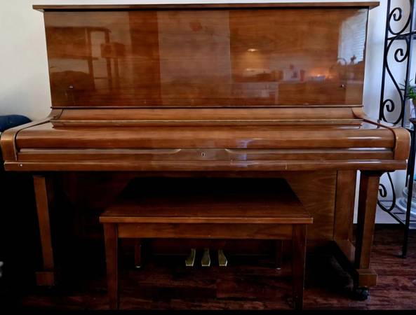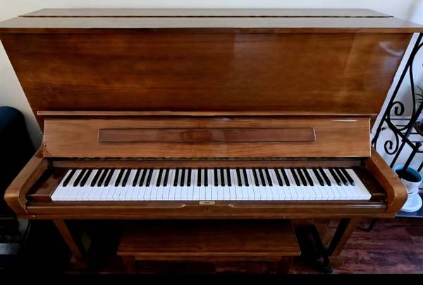 This full size upright piano, model U-131, offers advanced experience level players a touch sensitive velocity experience. With a classic design and high-quality materials, this vintage piano is a timeless and elegant addition to any home or music studio. Its sturdy construction and rich walnut finish make it a standout piece for pianists seeking a unique and well-crafted instrument. High quality music deserves a high quality instrument. Don't settle for less. It recently appraised at $2200.